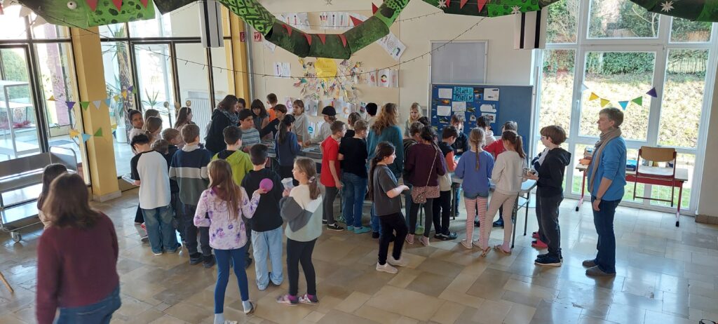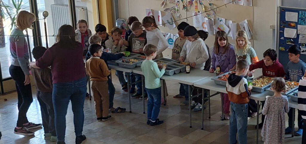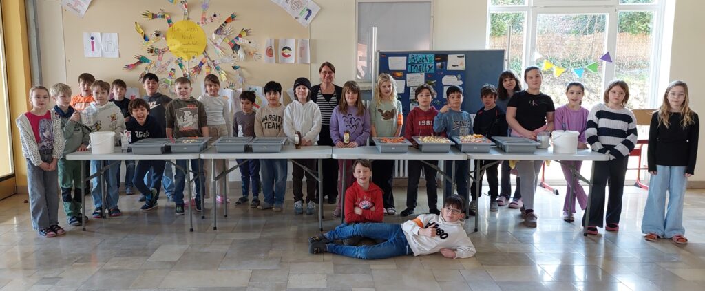 Dann kam der große Moment: Die einzelnen Klassen stellten sich an und wurden bedient. Erstmals wurde auch Milch angeboten, was große Zustimmung fand.